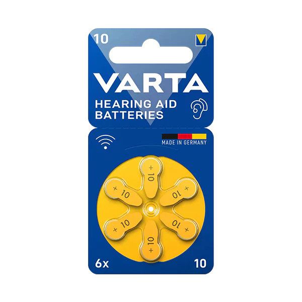 باتری سمعک سایز 10 بسته 6 عددی از محصولات برند VARTA آلمان است که برای سمعک های استاندارد و با کارایی بالا مناسب هستند. باتری سمعک 10 وارتا 70 درصد انرژی بیشتری نسبت به سایر باتری های سمعک موجود در بازار دارد که باعث شده 25 ساعت ماندگاری بیشتری دارد. باتری سمعک وارتا شماره 10 نسبت به سایر باتری های سمعک دارای مزایای زیر می باشد: ولتاژ پایدار و صدای شفاف برای اتصالات بلوتوث و برنامه های بیسیم 0.0 % باتری بدون جیوه و مقاوم دربرابر نشتی تا 70 درصد انرژی و قدرت بیشتر و قابل اعتماد نسبت به استاندارد جهانی +25 ساعت کار بیشتر برای سمعک نسبت به استاندارد جهانی تضمین عملکرد در سطح بالا و زمان ذخیره سازی تا 4 سال (در صورت عدم استفاده از باتری، می توانید 4 سال آن را نگهداری کنید) ساخت آلمان و ضمانت کیفیت از سمت برند وارتا بسته بندی مناسب و دارای صفحه چرخان برای خارج کردن آسان باتری ها از بسته بندی کارت بسته بندی دو لایه و محکم برای ایمنی بیشتر و مقاوم در برابر ضربه سازگار با محیط زیست به دلیل استفاده از مواد بدون ضرر