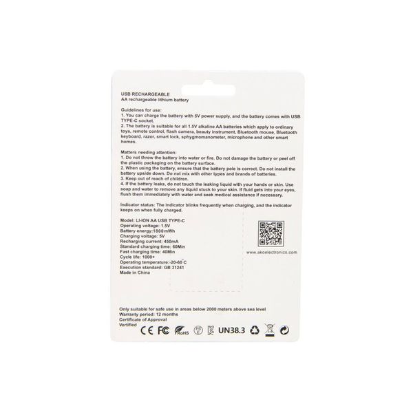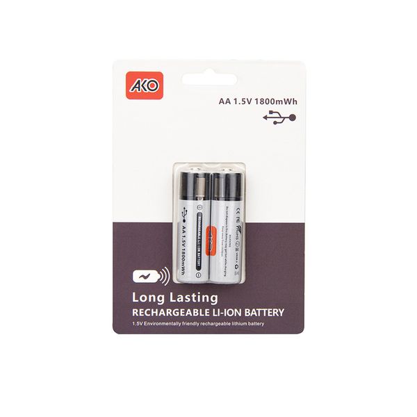 باتری قلمی قابل شارژ آکو مدل AA LI-ION بسته 2 عددی